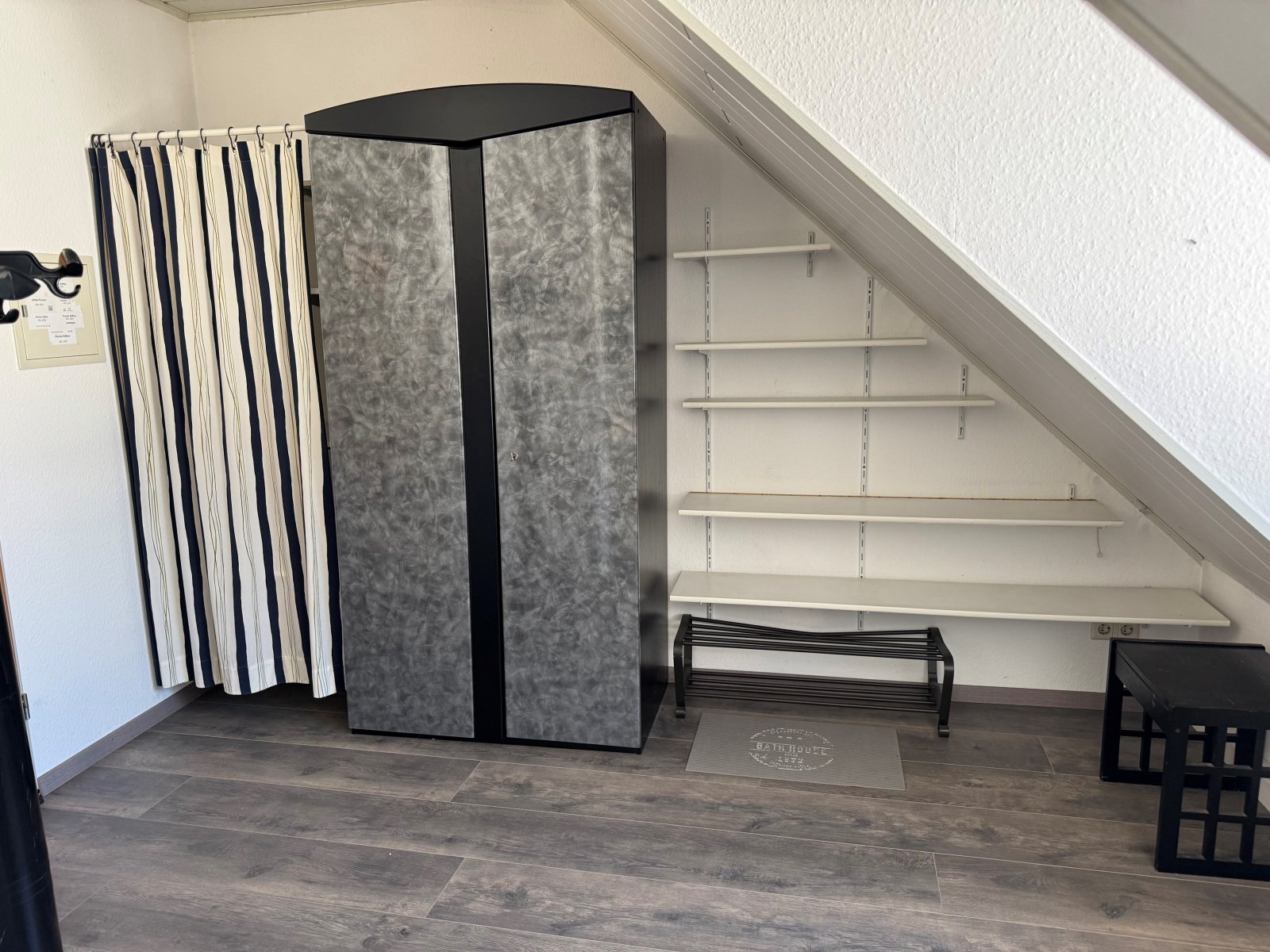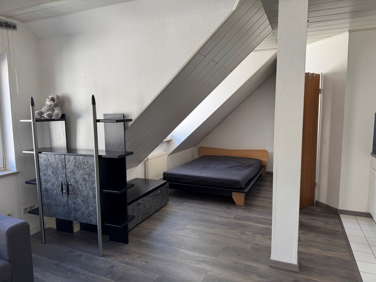 • das Appartement wird möbliert vermietet bestehend aus Bett, kleiner Tisch + Stühle, Schrankelemente, 2er Sofa